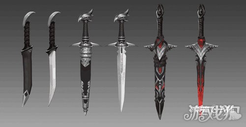 在设计武器时,糅合一部分皇室浪漫、骑士英雄主义和血腥残暴的感性化需求,在职业武器的刻画上又参考职业定位,做出一定的延展。