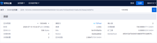 输入区块高度,可查看该区块打包的普通交易、DASH交易与出块详情