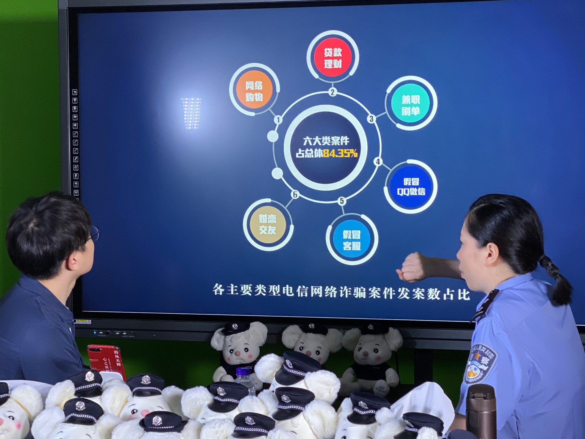 在闵行区常见的电信网络诈骗共有6大类型,占到总数的84.35%。澎湃新闻记者 俞凯 图