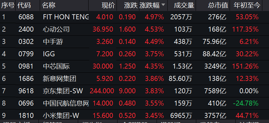 新浪港股讯 7月17日消息,科技股大涨,中芯国际涨4%,京东集团涨3.8%,小米集团涨3.45%,阿里腾讯美团涨3%。