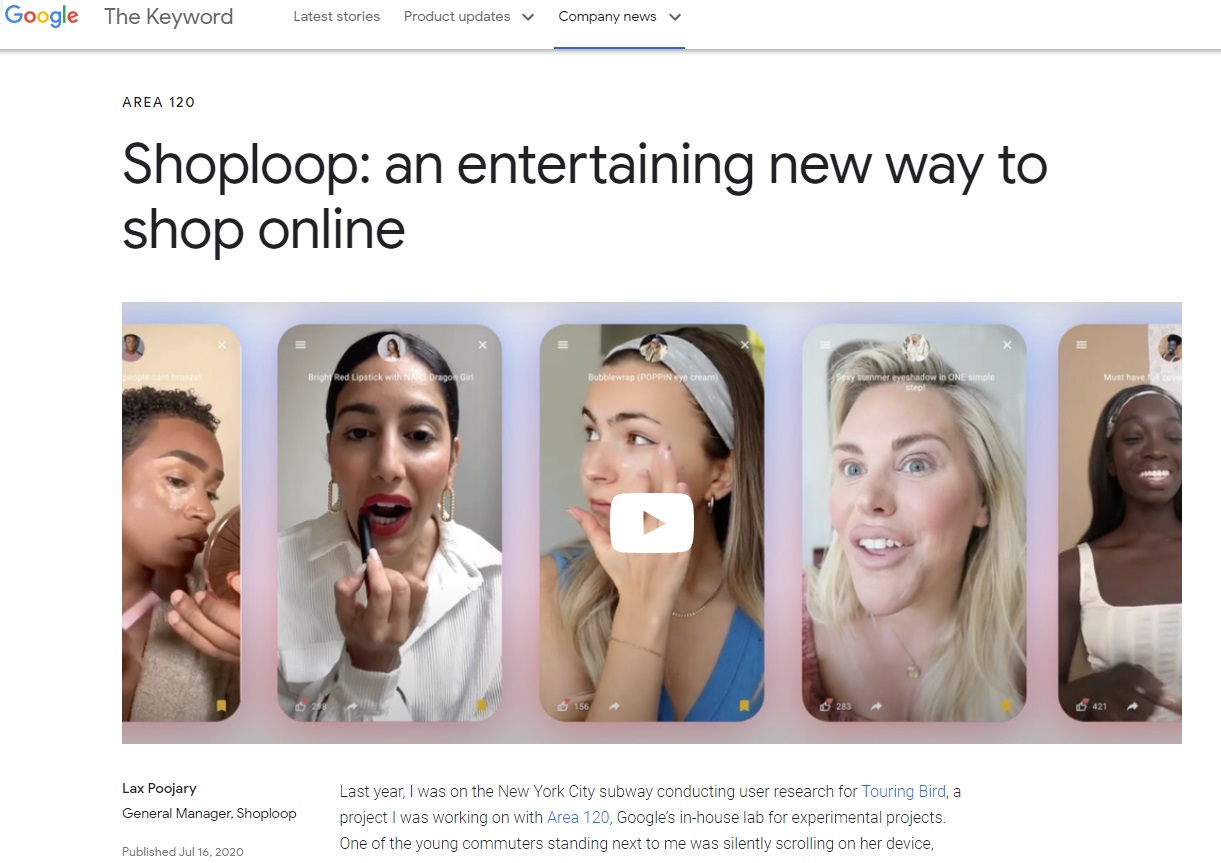 IT之家7月17日消息 Instagram 宣布将于周四在美国推出 Instagram Shop 购物板块,旨在开拓其视频购物平台。据外媒 techcrunch 报道,谷歌的最新实验产品 Shoploop 同样是一个视频购物平台,专注于美容产品领域。谷歌将以此面对 Facebook 和 Instagram 的竞争。