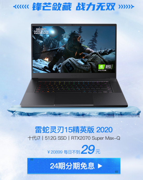 这次夏日清凉套餐的主打是雷蛇灵刃15精英版2020款游戏本,一款让你华丽变身的作战装备。