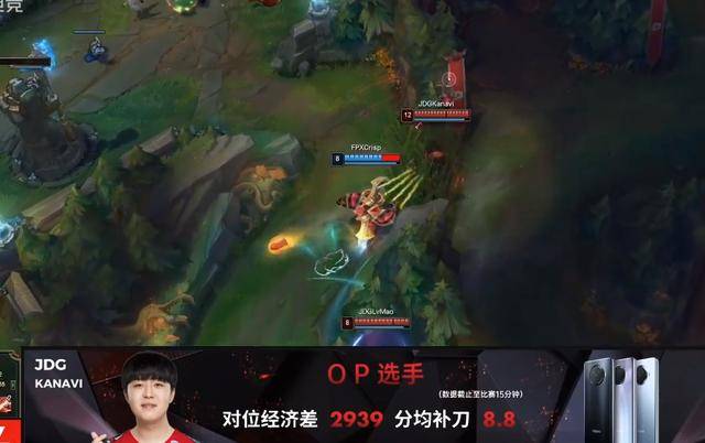 这场比赛中,kanvi的男枪不仅单吃一血塔,还一度接管中路兵线,吃光了FPX所有野怪,最终在比赛十几分钟的时候,领先了小天整整四级,压了一百多刀,对位经济差达到两千多。