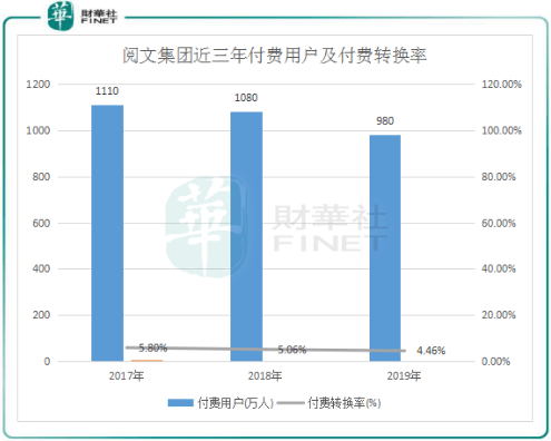 另外,在行业前列的这几家公司近几年来的付费人数及付费转化率在下降,影响到经营业绩。以阅文集团为例,阅文集团2017年-2019年无论是付费人数和付费转化率方面都逐年下降,其中付费转化率下降1.34个百分点。