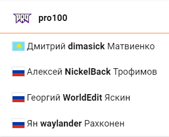 现如今pro100的阵容如下: