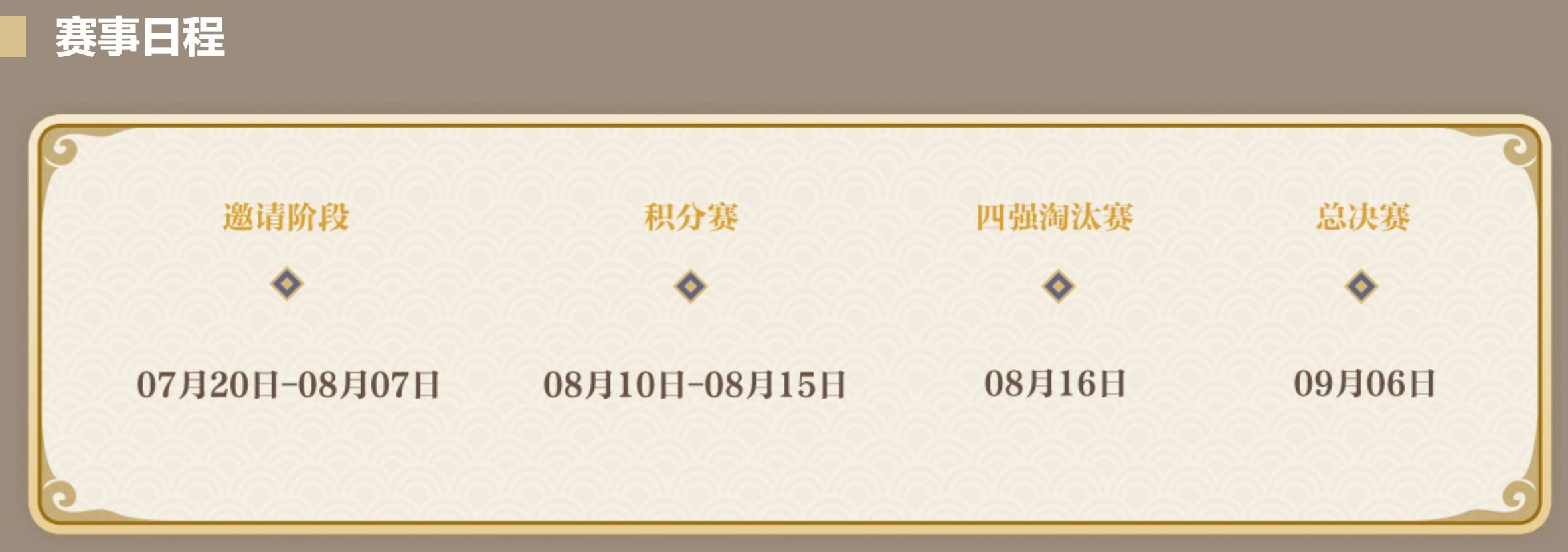 本届公会精英赛分为积分赛、四强裁汰赛、总决赛三年夜阶段。一切参赛玩家将正在8月10日~8月15日正在各自组别进行轮回积分赛。取得总积分前四名的战队,将取得参加8月16日裁汰赛的资历。