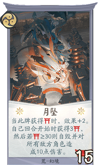 觉悟后的荒正在根底才能以外,每一当己形式神应用幻景牌,他都取得迅捷成果。搭配荒的战役损伤加成,幻景的持久能更迅速叠加起来。“月坠”作为他首要的SSR卡牌,能正在两到三个回合内触发成果,清场才能弱小。