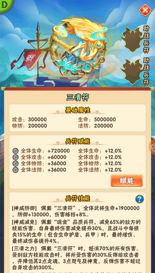 三清符是全进攻性辅佐兵符,领有三清、道佑、道衍三重进攻性BUFF,单回合内全副触发,可霎时晋升本身阵容进攻才能。正在当下各类正视进攻的技艺机制和宏大的攻打力增益,让进攻属性位置比拟难堪,而三清的呈现则让进攻属性瞥见了曙光。