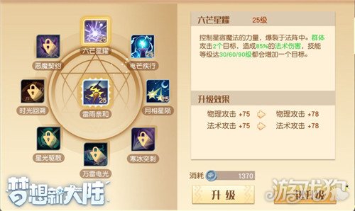 首先就是法师的招牌群体技能六芒星耀,每30级都能多攻击一个单位,最多同时攻击5个单位,可谓是日常最常用到的技能了,出色的伤害和打击数非常适合怪物多的战斗。