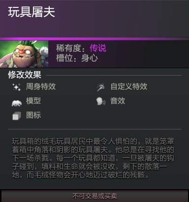 北京时间8月21日,DOTA2英雄帕吉更新全新饰品,身心槽位“玩具屠夫”加入到游戏中。赋予屠夫截然不同的外观和主题风格,全新的英雄配音和技能音效让帕吉成为了隐藏在战场阴影中让人害怕的绒毛杀手。