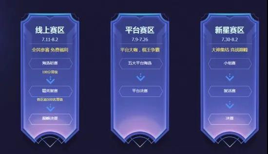 平台赛区先通过平台选拔的方式决出胜者,新星赛区则通过小组赛、复活赛和决赛方式进行。随后,三大赛区的16名顶尖选手进入LPL赛场参加为期四天的决赛。总决赛中,16名选手首先是分组参加突围赛,随后通过复活赛和总决赛的方式进行多轮比拼,决出“银河战争锦标赛”的三张门票归属权。