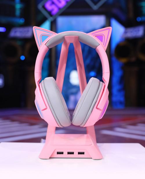 雷蛇丨街舞3限量款耳麦采用萌猫元素设计,经典的雷蛇粉晶配色搭配可爱猫耳设计让玩家尽情彰显可爱或高冷的猫咪风格;定制调教的40毫米驱动单元配合超低延迟体验,在打造清晰的沉浸式体验的同时,提供流畅的音效和竞技优势;蓝牙5.0无线连接确保可靠的无线体验,并带来最长约50小时的超长续航;搭载Razer Chroma RGB幻彩灯光技术,猫耳及耳罩可单独调光;波束成形麦克风能够确保更好的隔音效果和更清晰的语音体验。
