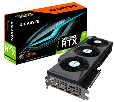 2020年 9月,技嘉科技与NVIDIA一同发表最新一代采用NVIDIA Ampere架构的GeForce RTX™ 30系列GPU,技嘉首先推出Geforce RTX™ 3090 GAMING OC 24G, Geforce RTX™ 3090 EAGLE OC 24G, Geforce RTX™ 3080 GAMING OC 10G, Geforce RTX™ 3080 EAGLE OC 10G等4款显卡。4款显卡都采用了技嘉风之力三风扇正逆转散热系统、独特刀锋导流造型风扇、纳米石墨烯润滑油、进气格栅散热技术、超大铜板与复合式热管散热、RGB fusion 2.0炫彩灯光、造型金属强化背板、与技嘉认证超耐久用料,让所有玩家都能在稳定运作的状况下,享受超频显卡带来的流畅游戏体验。