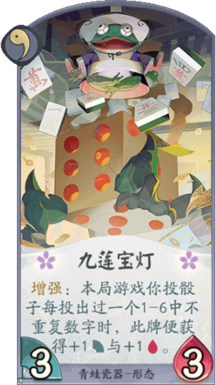 田鸡磁器的两种形状“门前清”以及“九莲宝灯”,是他站场才能最要害的两张牌。正在二勾玉阶段,“门前清”优秀的血量以及运势成果,确保了他是一名十分难以应酬的肉盾式神。