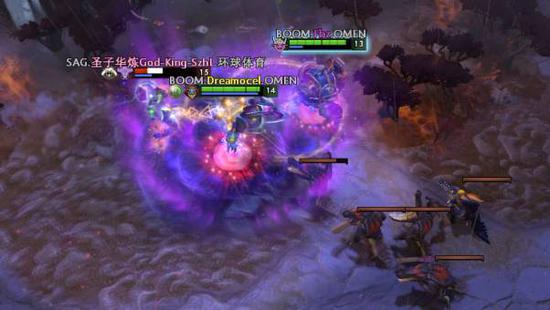 本场比赛的第一局,操刀玛尔斯的机枪兵被BOOM三人组在上路连抓两次。而在玛尔斯读秒的间隙,Mikoto的卡尔收下一代肉山。卡尔带盾,链子哥只能将虚空大招砸给Dreamocel的幽鬼。中路混战,在VS用移形换位救下幽鬼的一瞬间,SAG败局已定。