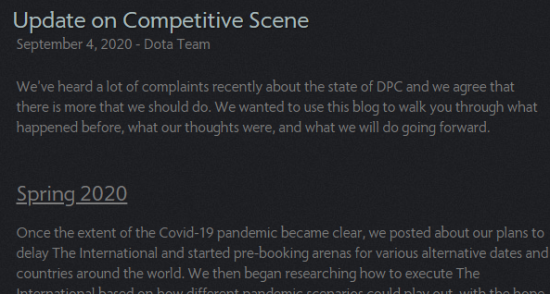 "最近,我们听到了很多社区对于DPC赛事状态的抱怨,而我们也承认我们本应做得更多。我们想通过这篇博文,告诉大家之前的情况,我们之前的考量以及我们下一阶段的打算。