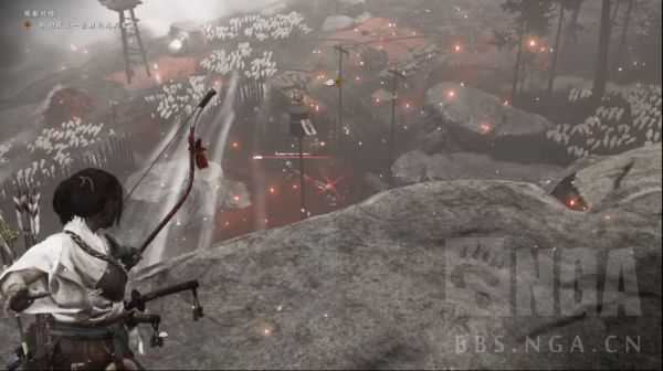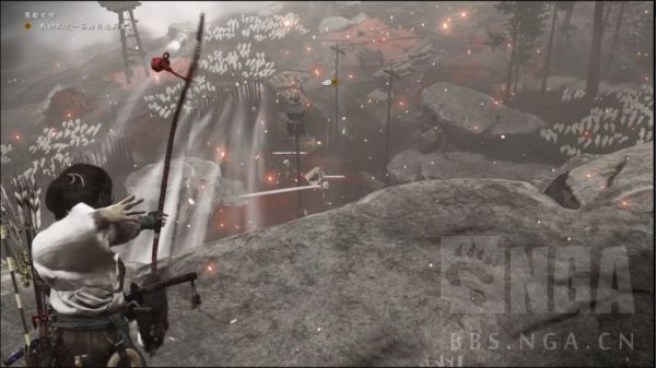 站在石头上方便瞄准,依旧射一箭躲一下,听他们的开心大吼后再射,如果真是不小心察觉指示变红,直接丢烟雾弹,能跑多远跑多远,回来继续。