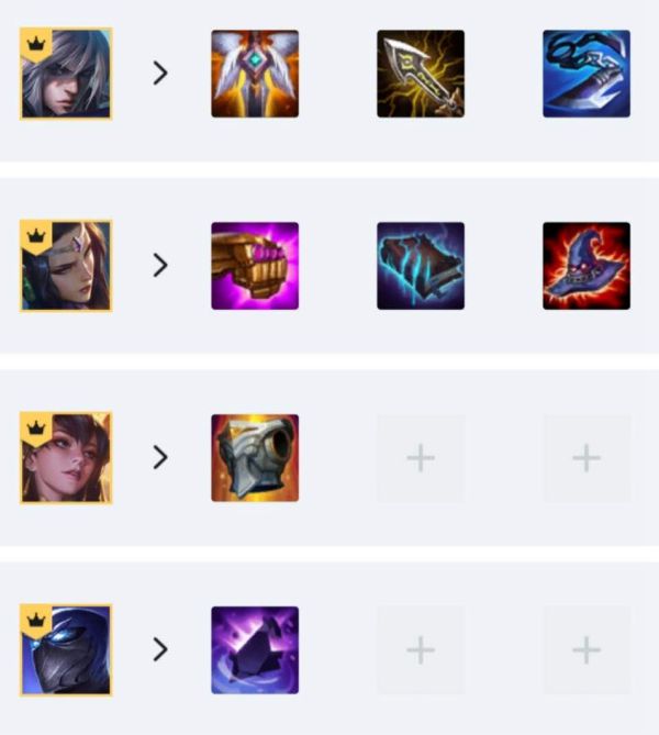 玩这套阵容如果是冲着吃鸡去的,那么我们就必须优先考虑做男刀的装备,而且如果前期不打算走连败的路线的话,那么开局抢装备就是至关重要,一般开局建议大家拿大剑,其次拿拳套或者反曲弓这两个装备。大剑主要能够给男刀做出无尽、巨杀、复活甲这三件装备,复活甲的优先级最高,如果一把游戏里面只有这把大剑,那么我们肯定必须做的就是复活甲,像其他装备我们可以拿破甲弓和正义之拳来代替。哦对了,大家也不要想着连胜选秀的时候能够拿到大剑这个装备,第三次出来的时候一共3把大剑,一把也没拿到。可想而知,大剑当前是有多热门。