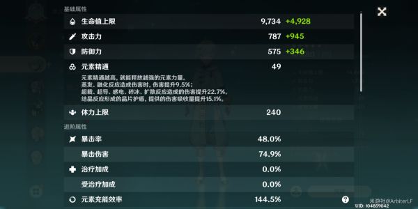 这是人物属性,不算毕业,只能说接近了,我的圣遗物其实跟拉胯。爆率爆伤都是不够的。