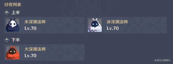进去肯定选暴击爆伤了(当然,要是只是为了单纯过,也可以选生命值),因为水法师的DEbuff,所以先把水法师打掉(破水盾现在都是先用冰的,所以推荐大家带重云,七七,凯亚)然后再打冰法师(冰用火)