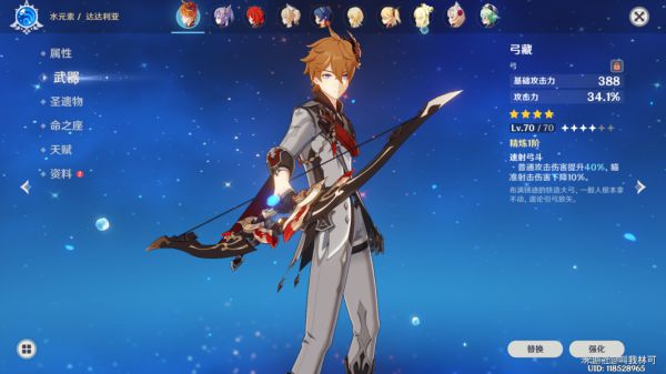 达达利亚出来以后,其毕业武器天空弓毋庸置疑。但是很多玩家没有五星弓箭,便在四星武器中寻求最优解。本人也出了达达利亚,有弓藏便给他戴上了。