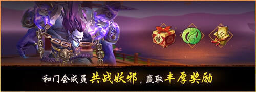 与此同时,两个平行世界的首度相融,令天地元气产生了微妙的变化。某些邪祟试图趁机作乱,冲入门会驻地,企图一举击溃守卫人间的中坚力量!今日维护后至11月18日21时,各门会的驻地将惊现三只强大的妖邪,降妖师们必须迅速回到驻地,向其发起挑战,彻底粉碎它们的阴谋!随着全门会降妖师对妖邪挑战进度的不断提高,相应的门会奖励将陆续解锁,当妖邪被击退后,门会成员还可领取一份结算奖励,门会奖励和结算奖励中都有机会掉落稀有道具!
