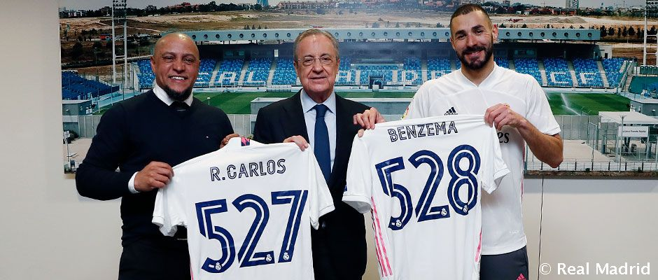 有统计数据显示,本场比赛是本泽马代表皇马出场的第528场比赛。而这也让他超过了前辈卡洛斯(代表皇马出战527场),成为了皇马队史出场次数最多的非西班牙球员。