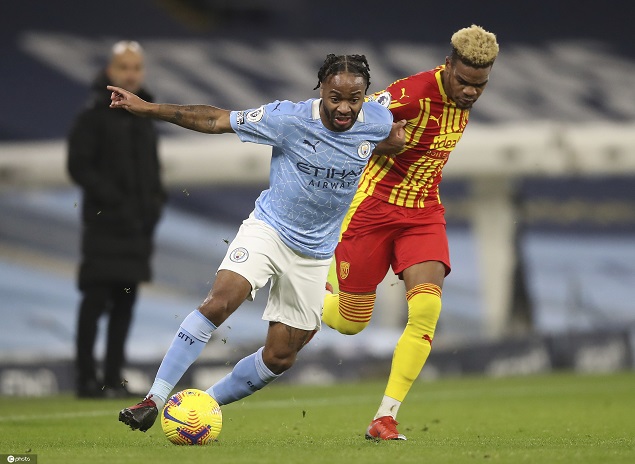 第57分钟,曼城左路传中到禁区内,热苏斯头球一顶,斯特林后点面对门将一脚抽射,皮球被约翰斯通用身体挡出。