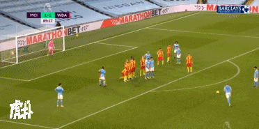 第86分钟,曼城获得前场定位球机会,德布劳内任意球直接射门,皮球被约翰斯通飞身扑出。