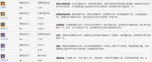 其他的四星武器中,首选副属性为暴伤的黑岩长剑。次选是副属性为攻击百分比的单手剑,其中笛剑是最合适的,宗室长剑和匣里龙吟的技能没什么用。