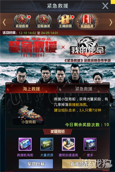 在电影上映期间,《我的使命》还推出了另一项联动内容——紧急救援任务。在广袤无垠的大海上,为了保障作业人员和物资安全不为海难威胁,总部发起紧急救援号召,等待军团战友的帮助!每次完成救援任务都能获得丰厚酬金,抓紧时间,救援使命刻不容缓!