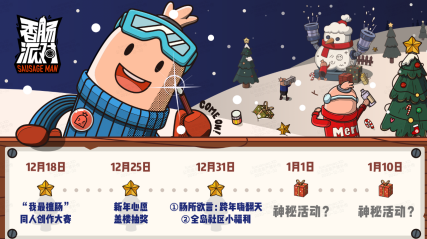 2020年已经进入倒计时,而香肠派对中的双旦活动也在12月18日以“我最擅肠”同人创作大赛拉开了序幕。除此之外,香肠派对还在双旦期间准备了一系列的福利活动,这篇文章就来帮大家总结一下~