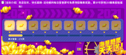 活动期间可拥有10次领取糖果的机会,一天累积一次,共可获得200糖果!