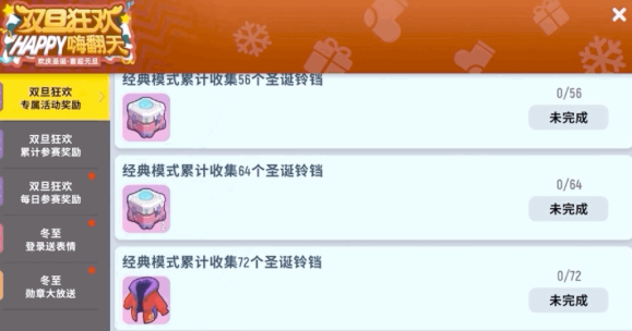 收集72个圣诞铃铛虽然不可以召唤神龙,但一定可以获得圣诞和元旦主题皮肤,还有更多补给箱奖励!