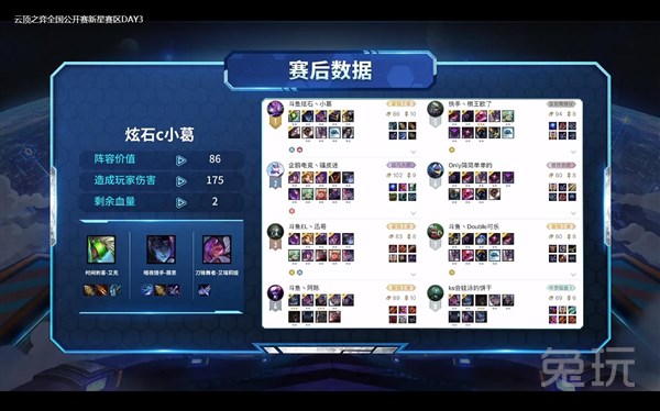 8月1日,英雄联盟:云顶之弈公开赛新星赛区比赛来到半决赛阶段!小组淘汰赛晋级的16位选手将继续角逐决赛名额。首先进行的是A组8位选手的半决赛,最后晋级的是炫石c小葛,Double可乐,陈庭伟以及小象丶骚皮迷。